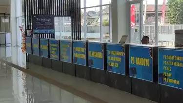 Seorang penjual tiket berjaga di terminal harjamukti, Cirebon, Senin (5/9/2022)