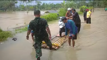 Terlebih, banjir terjadi pada saat jam pulang kerja dan pulang sekolah. Petugas TNI - Polri membantu mengevakuasi warga menggunakan rakit bambu, untuk menuju desa yang lokasinya bersebelahan dengan lokasi banjir.