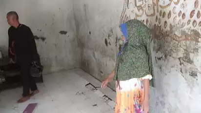 Ikin menjelaskan sebelum rumahnya nyaris rata dengan tanah terdengar suara retakan.