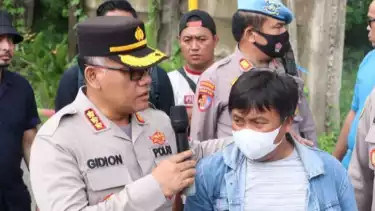 Kepala Polres Metro Bekasi, Komisaris Besar Polisi Gidion Arif Setiawan, saat konferensi di lokasi kejadian pembegalan, Jalan Kalimalang, Kabupaten Bekasi