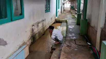 "Keran wae mati. Jadi, memang terpaksa wudhu di sini karena air bersih susah, nggak ada-ada," jelasnya.