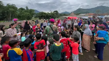 Tiba di titik lokaksi, Satgas TNI AL melaksanakan program trauma healing kepada anak-anak dan masyarakat dengan cara melaksanakan fun game, yang bertujuan mengurangi dampak trauma pasca bencana alam yang terjadi.