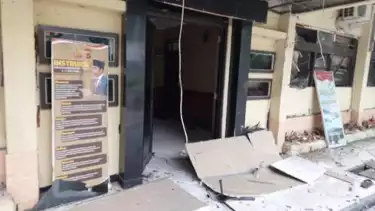 "Itu kejadiannya waktu anggota lagi apel. Kejadiannya sekitar pukul 08.15 WIB," ujar seorang anggota polisi yang berjaga di lokasi.