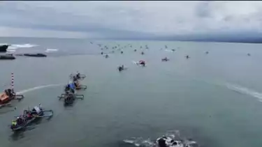 Hajat laut dilakukan ratusan nelayan, dengan tujuan sebagai rasa syukur kepada yang kuasa, menghiasi laut Selatan Garut.