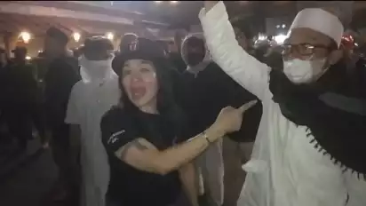 Wanita itu langsung mendekati massa dan terus memekikkan kalimat takbir. Ada seorang perwakilan ormas islam yang menyebut wanita itu gila, kemudian wanita itu terus memekikkan kalimat takbir. Perwakilan massa dari islam pun mencoba menenangkan suasana kemudian wanita itu langsung dibawa oleh rekannya ke dalam rumah makan.