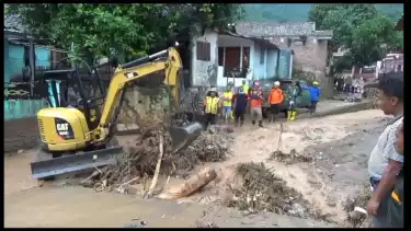 Pantauan di lokasi, Senin (19/12/22), material rumpun kayu besar dan lumpur yang terbawa banjir bandang, dibersihkan dengan alat berat Ekskavator. Kondisi jalan yang menyempit karena sisi pondasi jalan yang hancur terkena banjir bandang, membuat petugas berhati-hati saat melakukan evakuasi lumpur, pohon besar, dan barang warga yang menyumbat saluran air.
