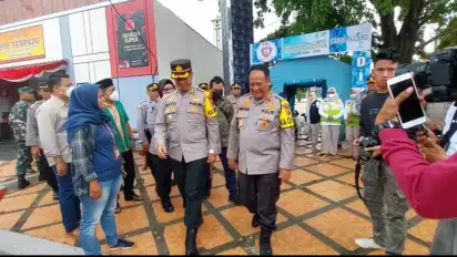 Usai meninjau posko terpadu di alun-alun Kota Banjar, Kapolda Jabar bersama rombongan melanjutkan peninjauan ke posko di Ciamis. (atw/ade)
