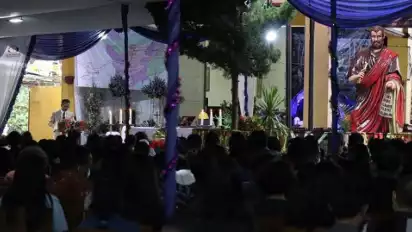 Acara keagamaan ini dilaksanakan dengan menggunakan tenda yang didirikan di depan gereja. Tampak tenda besar bernuansa biru dan putih berdiri kokoh di halaman depan pintu masuk gereja.