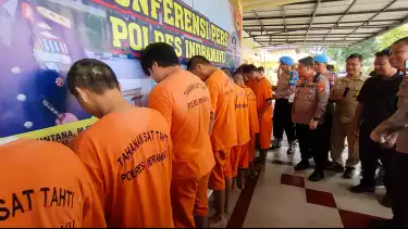 Tak butuh waktu lama, petugas berhasil menangkap para tersangka, ketiga belas tersangka ini merupakan warga kabupaten Indramayu.