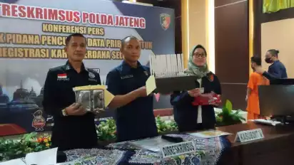 Semarang, tvOnenews.com - Seorang pemuda asal Kabupaten Batang, Jawa Tengah berinisial KA (25) diamankan Ditreskrimsus Polda Jateng karena melakukan bisnis ilegal yakni memproduksi simcard menggunakan data orang lain. Aktivitas melanggar hukum itu dilakukan di rumahnya di Dusun Jetis, Dlimas, Kecamatan Banyuputih, Kabupaten Batang.