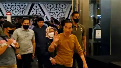 "Pak Jokowi, pak Jokowi," teriak penonton sambil tepuk tangan dan melambaikan tangan.