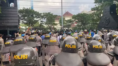 “Adik-adik tolong sampaikan aspirasi dengan tertib,” imbuh petugas kepolisian.