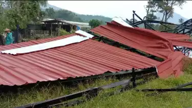 Temanggung, tvOnenews.com - Sedikitnya puluhan rumah warga di Kabupaten Temanggung, Jawa Tengah rusak berat akibat diterjang angin puting beliung, pada Jumat (17/3/2023) petang. Akibat bencana ini, kerugian yang dialami warga ditaksir mencapai angka puluhan juta rupiah.