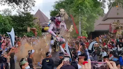 Solo, tvOnenews.com - Memperingati hari raya Nyepi, tahun baru Saka 1945/2023, kota Solo, Jawa Tengah, menyelenggarakan pawai Ogoh-Ogoh, di pusat Kota Solo pada Sabtu (18/3/2023) sore.