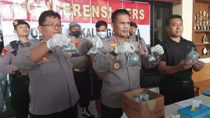 "Petugas yang telah mengamankan pelaku, melakukan penggeledahan di rumahnya dan berhasil menemukan serbuk bahan peledak yang sudah dibungkus plastik siap edar seberat 6 kilogram. Ada sekitar 11 plastik yang berisi serbuk bahan peledak dengan berat 5,5 kilogram serta 5 plastik dengan berat 1 ons," ungkap Kapolres.