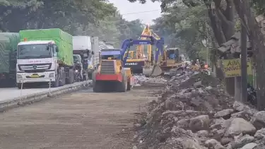 Pati, tvOnenews.com - Pengecoran jalan di jalur Pantura Timur Pati, Jawa Tengah, sepanjang 5 kilometer dipastikan belum selesai saat arus mudik tiba. Meski belum selesai, namun pihak kontraktor pelaksana proyek menjamin jalur tersebut bisa dilewati pemudik pada H-10 lebaran.