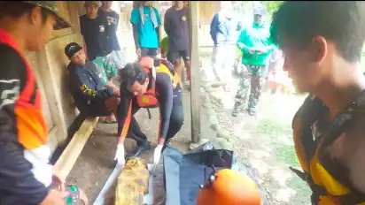 Boyolali, tvOnenews.com - Tim SAR Gabungan berhasil mengevakuasi anak kembar Muhammad Raffi (7) dan Muhammad Raffa (7) dari Sungai Anak Serang dalam keadaan meninggal dunia.