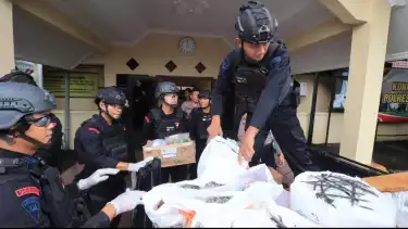 Purbalingga, tvOnenews.com - Polres Purbalingga mendatangkan Tim Penjinak Bom (Jibom) dari Satbrimob Polda Jateng, Kompi Banyumas, untuk melakukan disposal petasan dan bahan peledak petasan hasil temuan di sejumlah lokasi. Pemusnahan dilakukan agar tidak ada resiko jika disimpan di ruang barang bukti.