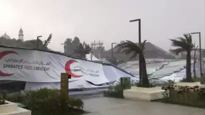 Menurut Asisten direktur operasional Masjid Sheikh Zayed, Bagus Sigit Setiawan, tenda tersebut roboh setelah terkena hujan angin.