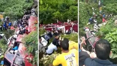 Ditinggal Sopir Ngopi dalam Kondisi Mesin Menyala, Bis yang Berisi Penumpang Terguling ke Sungai