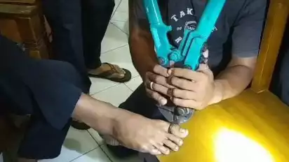 Klaten, tvOnenews.com - Berhati-hatilah ketika bercanda. Seorang pelajar di Klaten, Jawa Tengah bernama Satria (16), warga Desa Jebugan, Kecamatan Klaten Utara, Kabupaten Klaten, Jawa Tengah tergembok jempol kakinya saat sedang bermain dengan teman-temannya.Â
