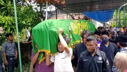 Klaten, tvOnenews.com - Suasana duka mengiringi prosesi pemakaman NA (17) di tempat pemakaman umum Desa Ketandan, Kecamatan Klaten Utara, Kabupaten Klaten, Jawa Tengah, Selasa (16/5/2023).