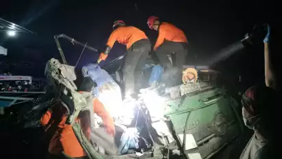 Kepala Kantor SAR Semarang Heru Suhartanto menceritkan kronologi kejadian Sabtu (20/05/23) sekitar pukul 20.00 WIB truk tronton warna hijau bermuatan minyak melintas dari arah Parakan menuju Kertek hilang kendali akhirnya terjadi kecelakaan karambol" Diduga truk mengalami rem blong sang sopir truk tidak bisa mengendalikan akhirnya terjadi kecelakaan "ungkapnya. (ade)