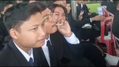 Sebuah video amatir, yang menunjukkan sejumlah siswa dari SMK Yosonegoro Kabupaten Magetan Jawa Timur, asik merokok di kursi undangan acara wisuda.