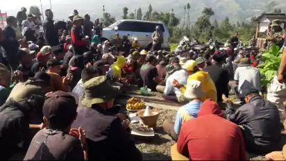 Temanggung, tvOnenews.com- Masyarakat Desa Tlahap, Kledung tumpah ruah di tengah ladang tembakau. Ratusan warga dari setiap rukun tetangga (RT) membawa ambengan (nasi tumpeng) sebagai wujud syukur dan permohonan kepada Yang Maha Kuasa dalam ritual Wiwit Mbako.
