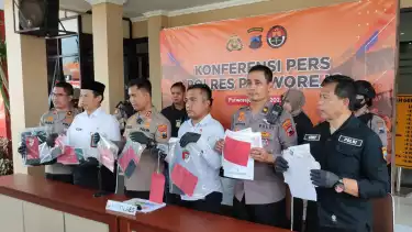 Purworejo, tvOnenews.com - Aparat Kepolisian Resor Purworejo meringkus sepasang suami istri. Hal ini karena diduga melakukan penipuan dan penggelapan uang milik puluhan jemaah calon Umroh.