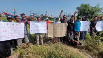 Pati, tvOnenews.com - Puluhan nelayan di Juwana, Kabupaten Pati, Jawa Tengah, gelar aksi demo mengutuk keras pelaku pembakaran dua kapal nelayan asal Juwana, Pati dan Rembang, Jawa Tengah, di perairan Kalimantan Barat, pada Rabu (21/6/2023).