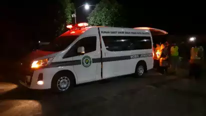 Mobil ambulan pembawa jenazah Patimah Soleh Mul Kamil.