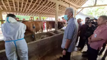 Gubernur Jawa Tengah, Ganjar Pranowo menyaksikan pemberian vaksinasi antraks pada sapi-sapi ternak