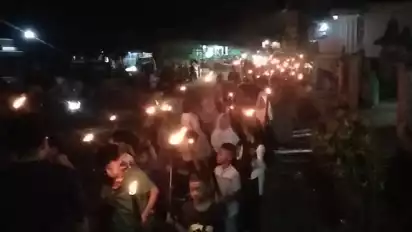 Dari pantauan, warga yang mengikuti Pawai Obor ini membawa peralatan seadanya, seperti Obor yang terbuat dari Bambu, yang sudah dinyalakan saat peserta pawai obor pergi dari rumah.