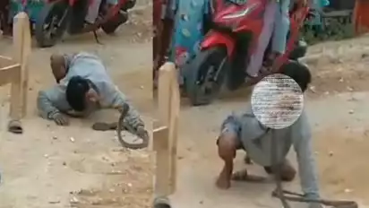 Dalam rekaman video amatir berdurasi tiga puluh detik, korban yang berkaus panjang abu-abu dan bercelana pendek itu awalnya beraksi menari bersama ular kobra di jalan kampung.