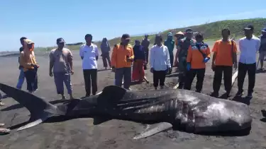 Bangkai Hiu Tutul Sepanjang 5 Meter Terdampar di Pantai Selatan Purworejo, Jadi Tontonan Warga