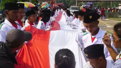 Warga Lereng Merapi Boyolali Arak Bendera Merah Putih Sepanjang 1000 Meter dalam Karnaval Peringatan HUT ke-78 RI