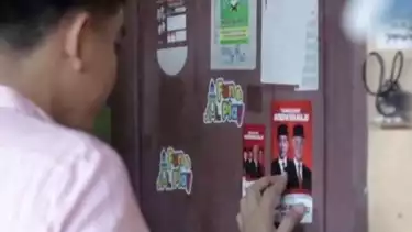Sebelumnya, beredar video di media sosial Twitter yang memperlihatkan Gibran mengenakan atasan garis-garis berwarna merah muda sedang menempelkan stiker di salah satu rumah warga.