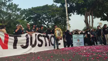 Semarang, tvOnenews.com - Kasus pembunuhan berencana pegawai Bapenda Kota Semarang, Iwan Boedi Prasetijo sudah satu tahun belum juga terungkap. Pada peringatan ini, ratusan orang mengingatkan kepada kepolisian dengan menggelar aksi di depan Polda Jateng , Kamis (24/8/2023).