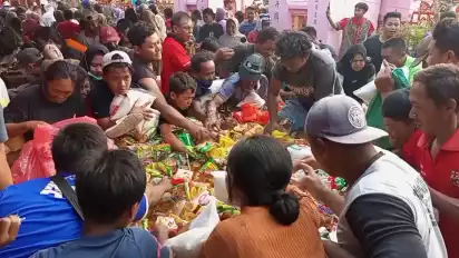 Setelah warga tionghoa menggelar sembahyang, pintu gerbang klenteng pun dibuka. Ratusan warga yang sudah menunggu diluar kelenteng berlarian masuk ke dalam kelenteng untuk mengambil sesaji berisi sembako tersebut.Â
