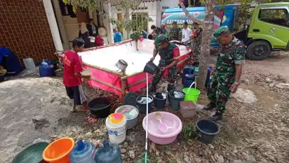 “Sesuai perintah Bapak Pangdam melalui kodim, kita laksanakan tanggap darurat kekeringan. Kami bekerjasama dengan BPBD Banjarnegara melakukan droping air bersih di beberapa wilayah, salah satunya di Desa Kebutuh Duwur ini. Di sini kita sediakan 4 buah tangki air bersih untuk warga disini,” katanya. (Rbo/Dan)