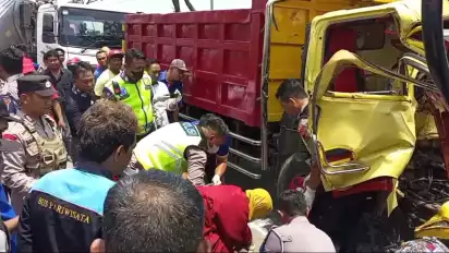 Kerasnya benturan membuat kabin dump truk dan truk trailer ringsek. Warga bersama polisi berupaya mengeluarkan sopir dump truk yang tewas di lokasi akibat terjepit kabin. Proses evakuasi berlangsung dramatis dan membutuhkan waktu selama satu jam lebih.