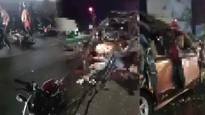 "Wehh kecelakaan, dowo banget, korban e akeh, ono wong wedok ning ngisor truk (wehh kecelakaan, panjang banget, korbannya banyak, ada perempuan di bawah truk)," kata pengunggah video di akun media sosial.