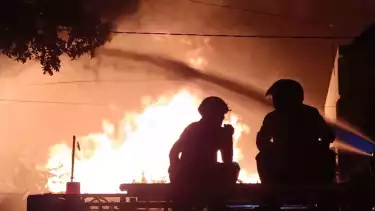 Solo, tvOnenews.com - Kebakaran gudang barang rongsokan di kawasan padat penduduk di Kampung Joyosudiran, Kecamatan Pasar Kliwon, Solo, Jawa Tengah, Selasa (3/10/2023) merembet hingga ke pemukiman warga.