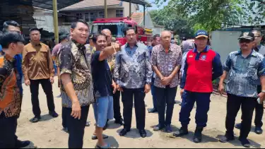 Solo, tvOnenews.com - Pejabat (Pj) Gubernur Jawa Tengah, Nana Sudjana meninjau lokasi gudang rongsok yang terbakar di Pasar Kliwon, Solo, Rabu (4/10/2023).