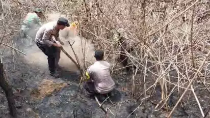 " Hari ini mendapat laporan dari Polsek Getasan melalui pak Kapolsek, bahwa di Desa Tajuk, lokasi di bekas lahan hutan Gunung merbabu yang terbakar tempo hari, masih ditemukan bara api dari akar pohon pinus maupun akar semak semak. Tim gabungan TNI/Polri, Relawan setempat dan pihak TNGMÂ langsung melakukan pemadaman dengan alat seadanya," ujar Kompol Fandy Setiawan, Jumat (4/10/2023).