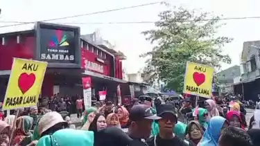 Banyumas, tvOnenews.com - Sekitar 300 pedagang Pasar Induk Ajibarang, Banyumas tergabung dalam paguyuban Ajimas Jaya, menggelar demonstrasi menolak rencana perluasan Pasar Induk Ajibarang, Selasa (5/12/2023). Mereka berorasi menyampaikan aspirasi dan tuntutan agar perluasan pasar urung dilaksanakan.
