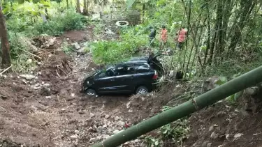 "Mungkin pengemudi tidak mengetahui saat melintas, tau-tau tebing jalan longsor, sehingga langsung terpeleset dan jatuh dari tebing setinggi 10 meter. Beruntung sopir selamat hanya mengalami luka lecet" Muhajir, Rabu (31/01/2024) siang.