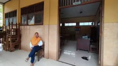 Termasuk saat hendak masuk ke kompleks SDN 1 Wonorejo juga perlu ada yang menjaga untuk menyeberangkan para pemilih melintasi genangan karena halaman sekolah juga masih tergenang banjir.