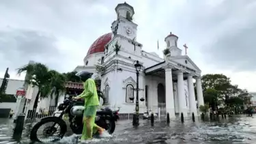 Semarang, tvOnenews.com - Banjir merendam kawasan Kota Lama Semarang, Jawa Tengah, pasca hujan deras yang melanda Ibu Kota Jawa Tengah itu sejak Rabu (13/3/2024) kemarin.